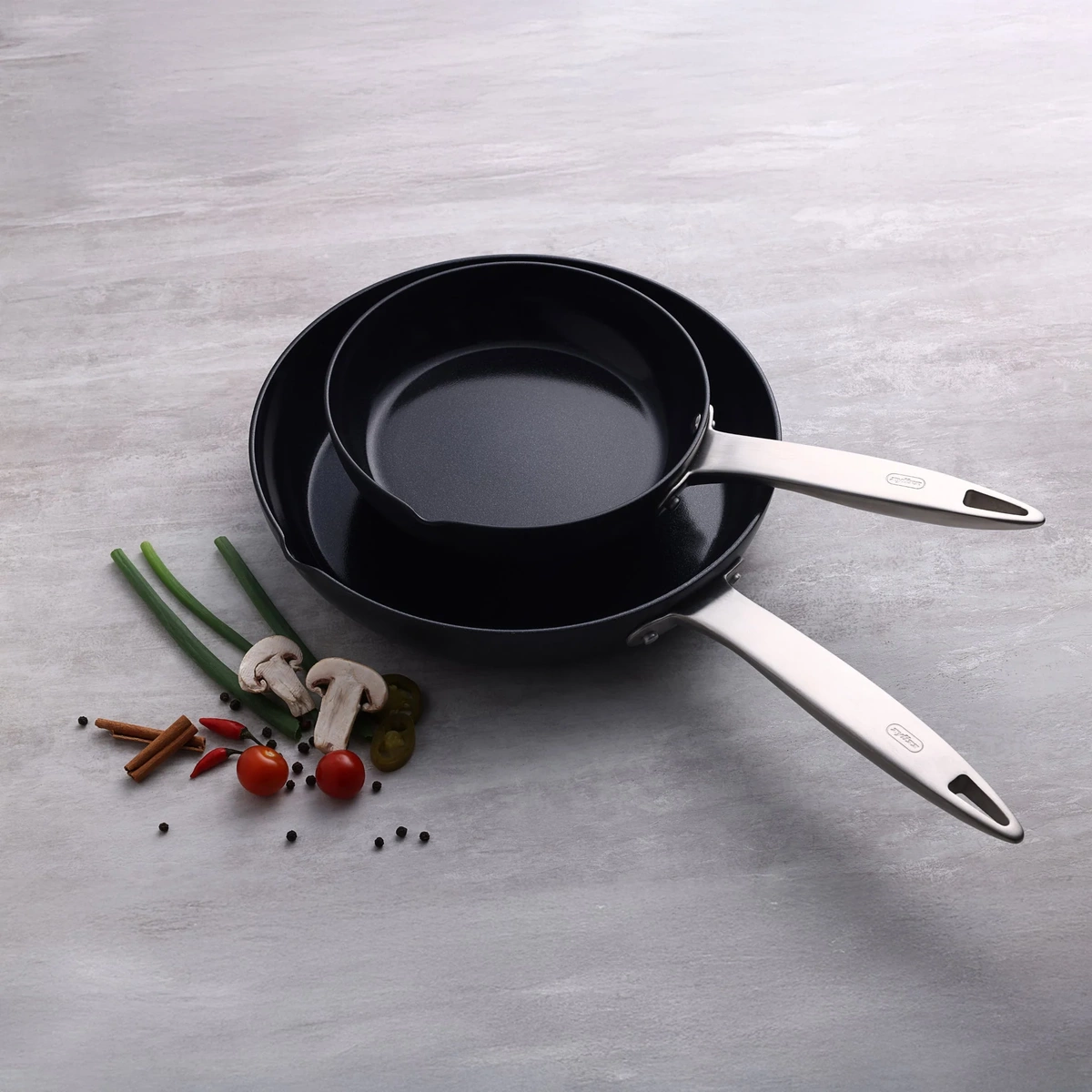 Patelnia Zyliss wykonana jest z hartowanego aluminium, co zapewnia jej znakomite przewodnictwo ciepła. Dzięki temu potrawy są równomiernie podgrzewane, co pozwala na osiągnięcie doskonałych rezultatów kulinarnych. Bez względu na to, czy smażysz warzywa, mięso, czy przygotowujesz omlet, z patelnią Zyliss każda potrawa będzie smakować wybornie.