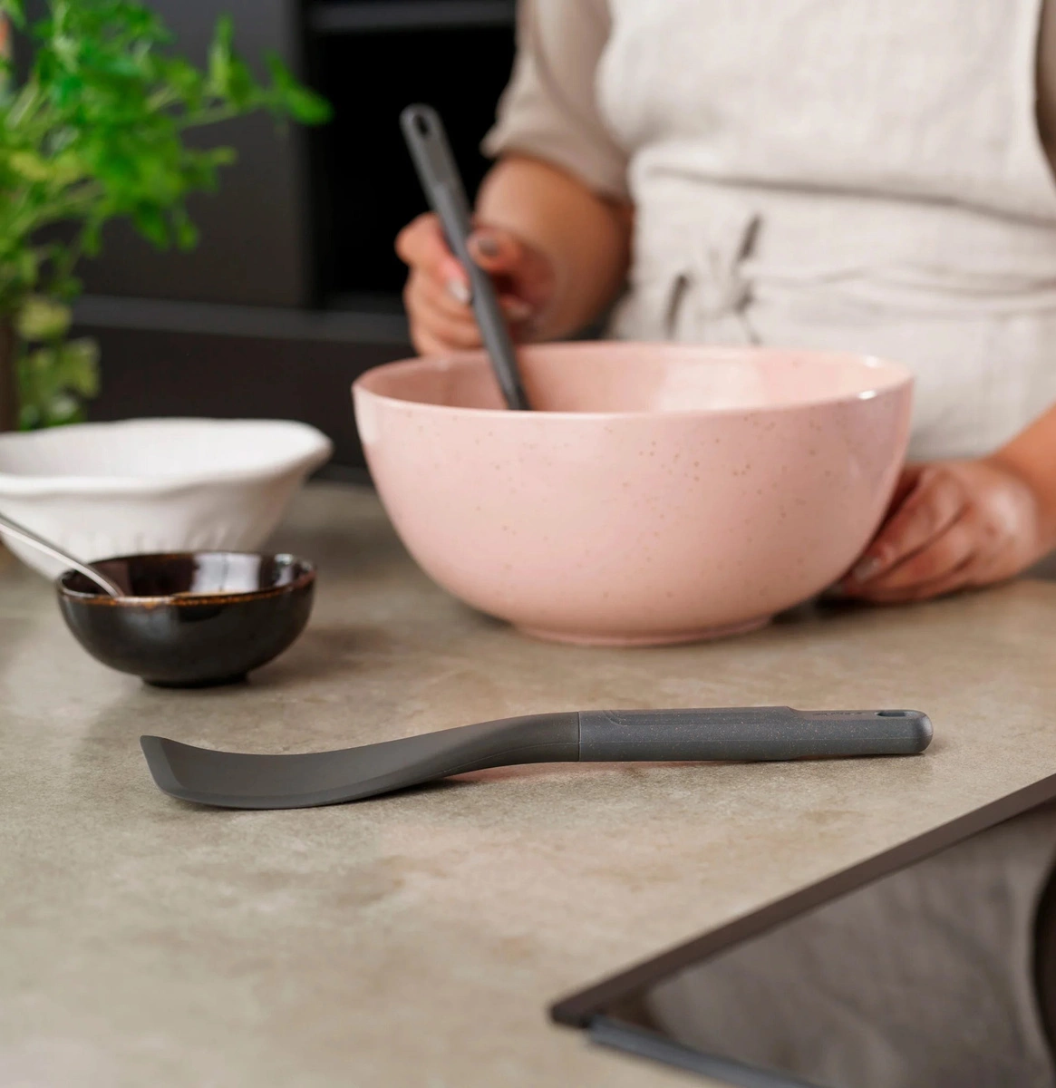 Łopatka Do Obracania Lift Econyl została zaprojektowana z myślą o ergonomii. Jej ergonomiczny uchwyt doskonale leży w dłoni, co znacząco zwiększa komfort pracy w kuchni. Dodatkowo, szeroka powierzchnia łopatki sprawia, że idealnie nadaje się do przewracania większych porcji jedzenia, a jej kształt umożliwia dokładne zebranie resztek potraw z garnków i patelni, co pozwala ograniczyć marnowanie żywności.