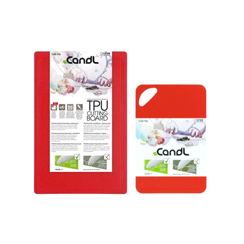 Odkryj wyjątkowy zestaw dwóch elastycznych mat do krojenia Candl, które stanowią niezbędny element każdej kuchni. Dzięki dużej (38x25 cm) oraz małej (26x17 cm) macie, krojenie warzyw, mięsa, ryb czy pieczywa staje się szybkie i wygodne. Czerwony kolor mat nie tylko przyciąga wzrok, ale także dodaje energii do Twojej kuchni.