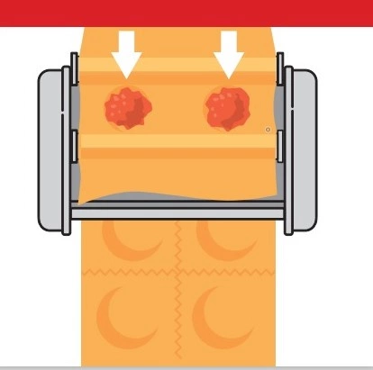 - Użyj rolki do wykrawania, aby uzyskać idealne kształty ravioli.