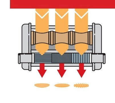 - Formuj makaron: Przeprowadź ciasto przez przystawkę, uzyskując pożądany kształt.