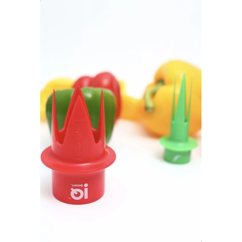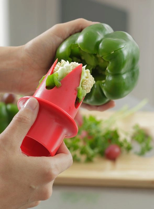 - Wymiary: Dwa rozmiary - czerwony trybownik dla dużych papryk i zielony dla małych.