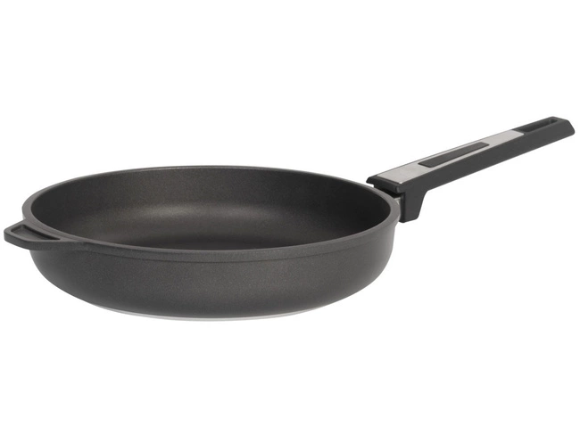 Patelnia została wykonana z najlepszej jakości materiałów przez renomowanego niemieckiego producenta SKK. Korpus o grubości 10 mm zapewnia doskonałą wytrzymałość oraz równomierne rozprowadzanie ciepła, co jest kluczowe dla efektywnego gotowania. Dzięki tym cechom potrawy są przygotowywane w krótszym czasie, a Ty oszczędzasz energię.
