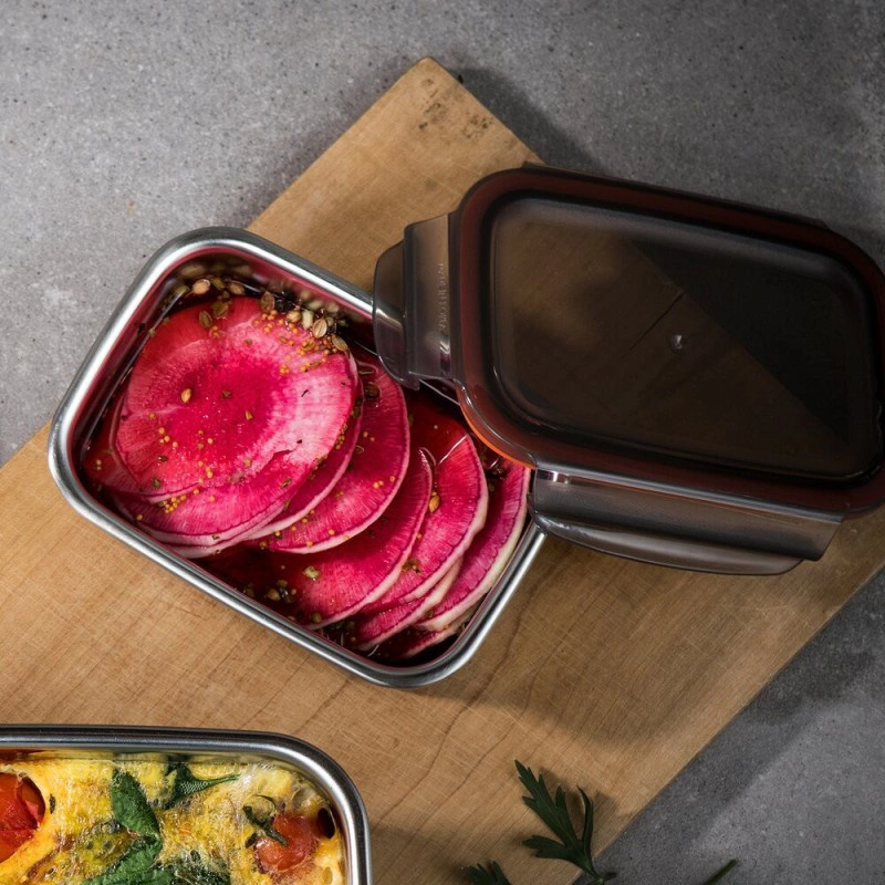 Pojemniki Flora dostępne są w różnych rozmiarach, co pozwala na przechowywanie różnorodnych ilości potraw - od przekąsek po pełne posiłki. Dzięki szczelnej pokrywce, która zapewnia hermetyczne zamknięcie, potrawy pozostają świeże na dłużej. Warto również podkreślić, że korpusy pojemników wykonane są ze specjalnego stopu chromu i miedzi - CromoSteelTM, co zapewnia nie tylko estetyczny wygląd, ale i bezpieczeństwo użytkowania.