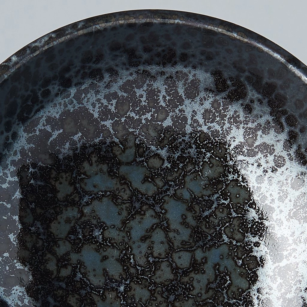 Glazura Black Pearl to prawdziwe dzieło sztuki. Charakteryzuje się intrygującymi plamami błyszczącej czarnej glazury na matowym tle, co nadaje jej głębi i elegancji. Subtelne refleksy cyjanu podkreślają unikalność każdego egzemplarza, co czyni je niepowtarzalnym elementem Twojej zastawy stołowej.