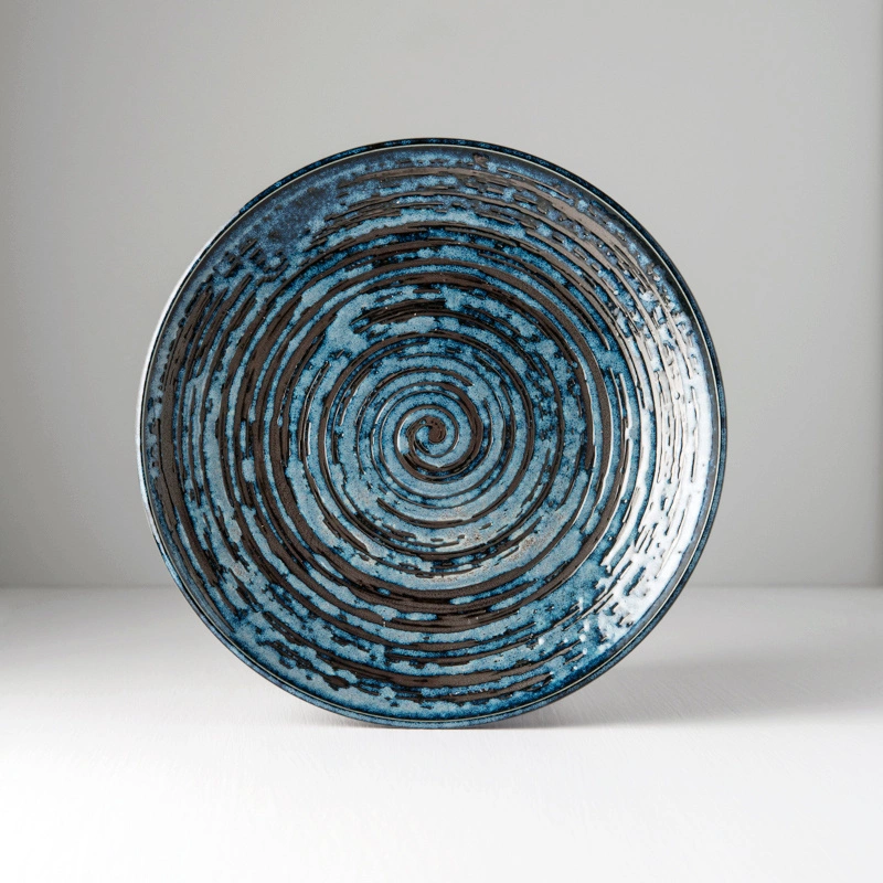 Odkryj wyjątkowy talerz okrągły 25 cm Copper Swirl, który doskonale sprawdzi się w każdej kuchni, a szczególnie w tych, które czerpią inspiracje z kuchni azjatyckiej. Jego atrakcyjny design z wirującym wzorem w kolorze brązowym na tle błyszczącej glazury w kolorze indigo przyciągnie wzrok Twoich gości i sprawi, że każde danie zyska na elegancji.