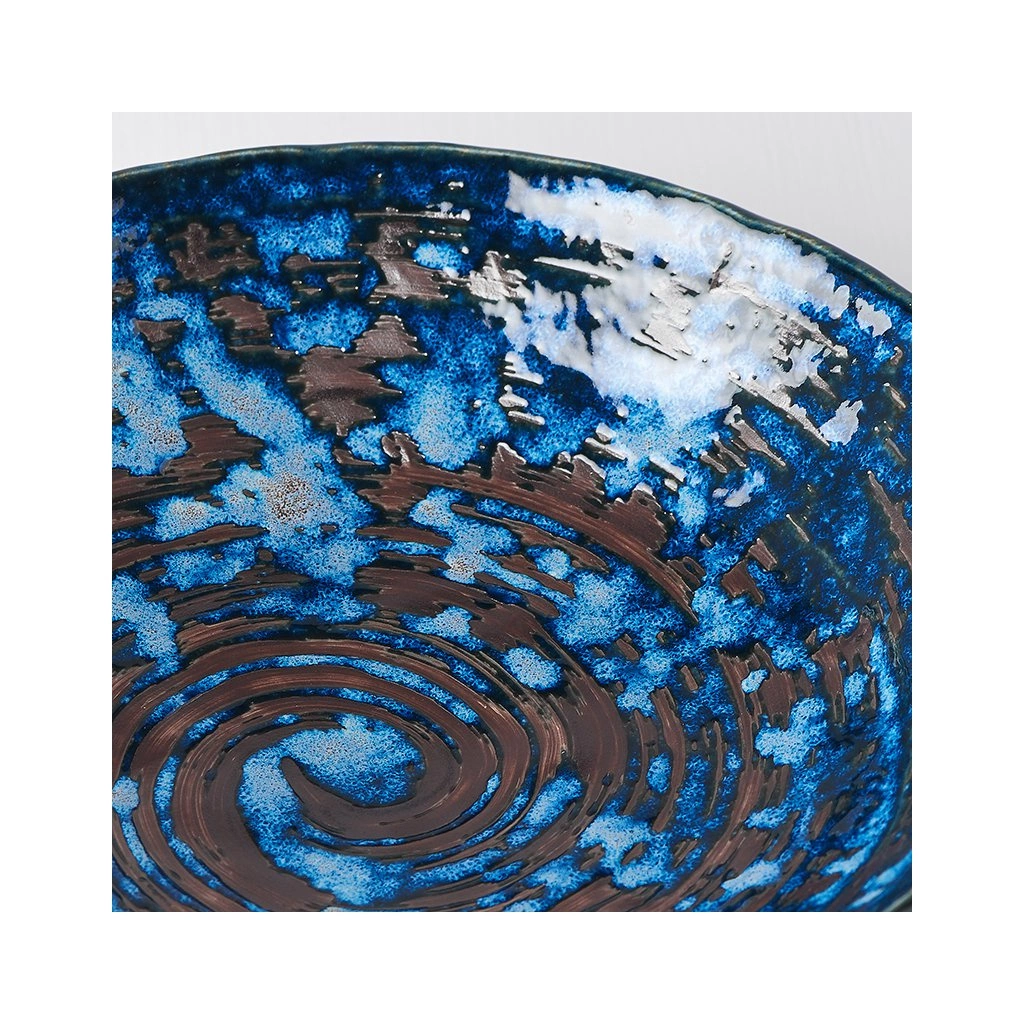 Linia naczyń Copper Swirl charakteryzuje się wirującym wzorem w brązowym, matowym kolorze na tle błyszczącej glazury w odcieniu indigo. Każdy egzemplarz jest unikalny, co sprawia, że nasze naczynia są wyjątkowe i niepowtarzalne. To rezultat ręcznego szkliwienia, które nadaje każdemu naczyniu indywidualny charakter.