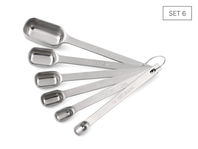 Zestaw zawiera 6 sztuk miarek o różnych pojemnościach, co czyni go wszechstronnym narzędziem w każdej kuchni: