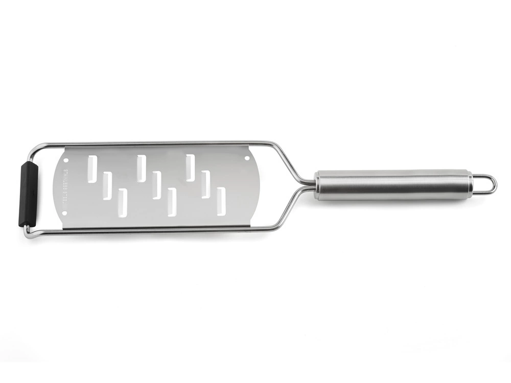 - Podłużnymi, poprzecznie ułożonymi ostrzami – idealne do ścierania warzyw, sera, czekolady oraz wielu innych produktów.