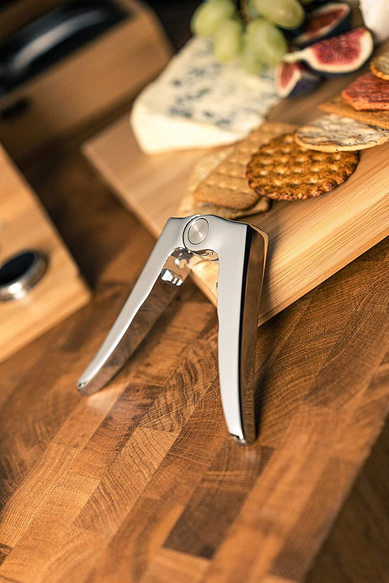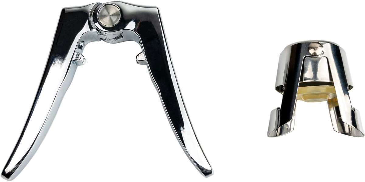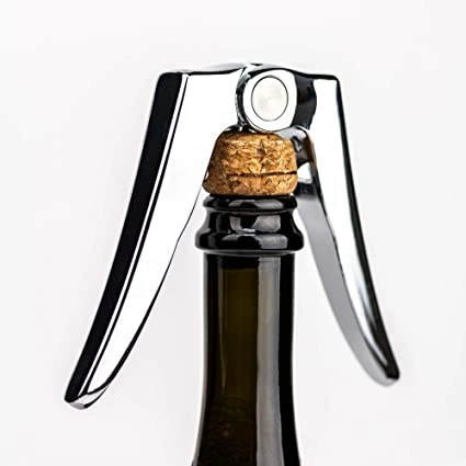 - Otwieracz do szampana wykonany z chromowanej stali nierdzewnej, zapewniający długowieczność i elegancki wygląd.