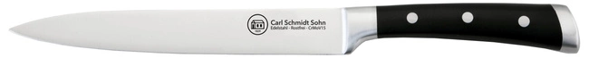 Odkryj doskonałość w kuchni dzięki nożowi do plastrowania 20 cm Herne od renomowanej niemieckiej marki Carl Schmidt Sohn. Ten wyjątkowy nóż, zaprojektowany z myślą o precyzyjnym krojeniu wędlin i mięsa, to niezbędny element wyposażenia każdej kuchni. Dzięki wąskiemu ostrzu o długości 20 cm, osiągniesz perfekcyjne plastry, które z pewnością zachwycą Twoich gości.
