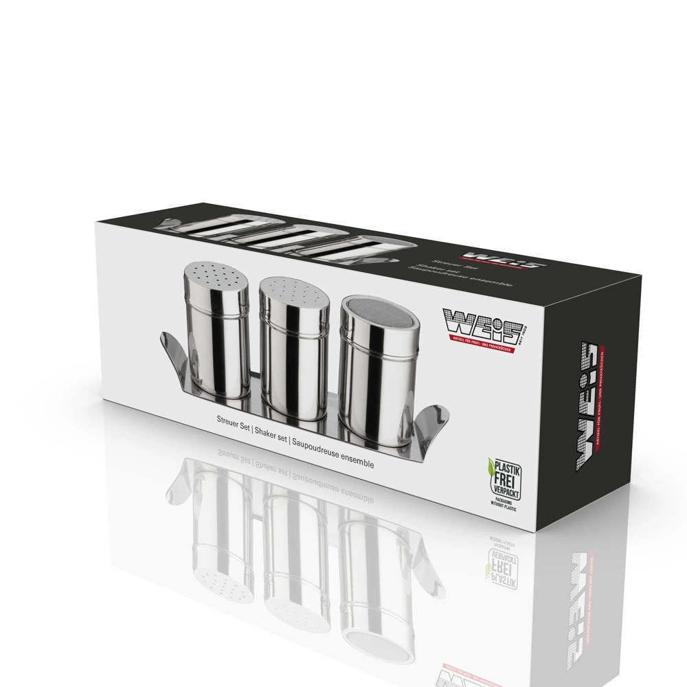 Poznaj Zestaw Dozowników + Tacka - Weis, który sprawi, że gotowanie i pieczenie stanie się prostsze i przyjemniejsze! Ten elegancki zestaw składa się z trzech pojemników, które doskonale nadają się do przechowywania sypkich produktów, takich jak cukier puder, kakao czy przyprawy. Dzięki różnorodnym otworom w pokrywie, możesz w prosty sposób precyzyjnie dozować składniki, co z pewnością ułatwi przygotowywanie Twoich ulubionych dań.