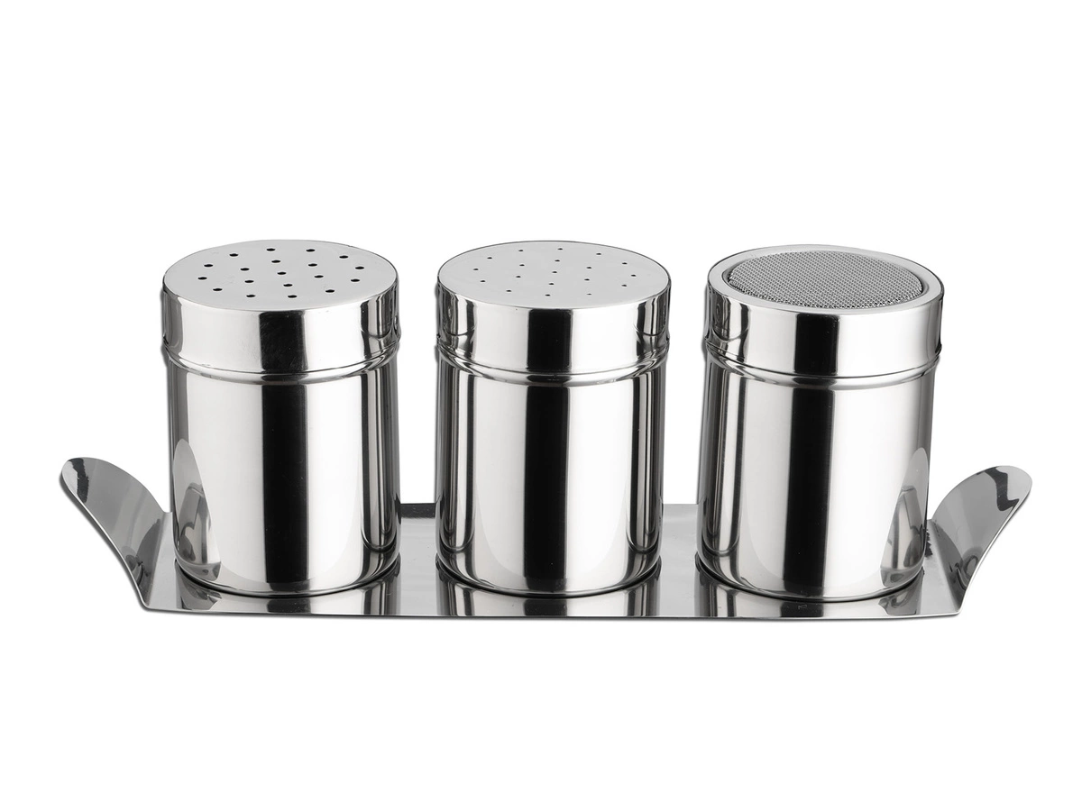 - Zestaw 3 dozowników-posypywaczy wraz z tacą