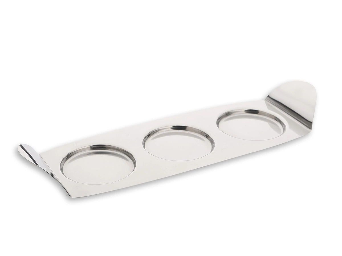 - Wysoka jakość materiałów – pojemniki oraz taca wykonane są z polerowanej stali nierdzewnej, co nie tylko zapewnia elegancki wygląd, ale również trwałość oraz łatwość w czyszczeniu.