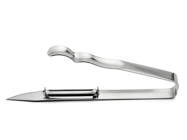 - Dwustronne, ruchome ostrze – idealne do chwycenia i usunięcia zewnętrznej skórki szparagów bez ryzyka ich uszkodzenia.