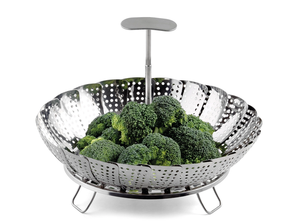 - Przemyślana konstrukcja: Wystarczy rozłożyć nóżki, umieścić wkład na dnie garnka i dodać wodę, aby rozpocząć gotowanie.
