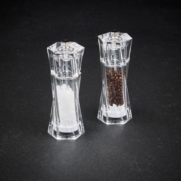 Odkryj doskonałość w kuchni z zestawem młynków do soli i pieprzu Aldeburgh od renomowanej angielskiej marki Cole & Mason. Te eleganckie młynki o wysokości 14 cm to nie tylko praktyczne narzędzia, ale również stylowe akcesoria, które wzbogacą Twój stół. Dzięki przezroczystemu akrylowi możesz z łatwością kontrolować ilość przyprawy, a ich nowoczesny design sprawia, że są prawdziwą ozdobą każdej kuchni.