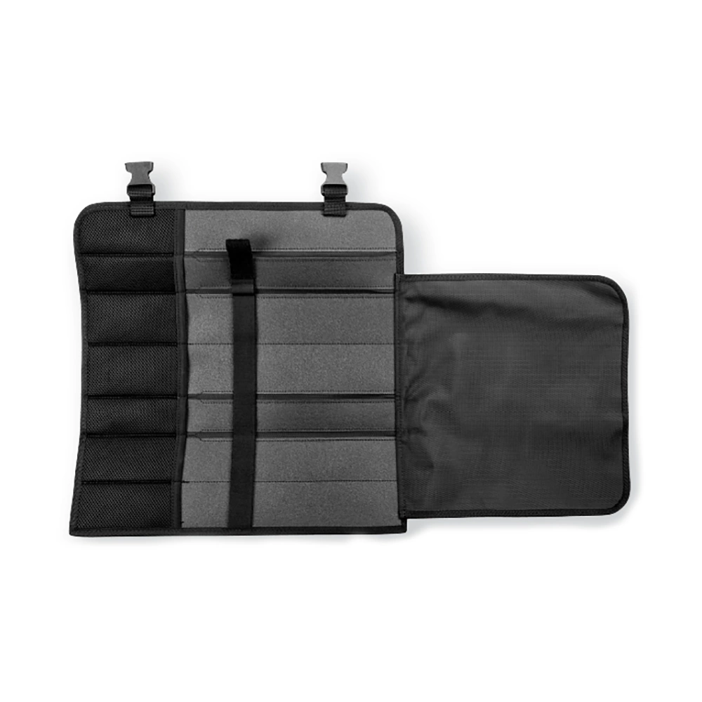 Torba została wykonana z grubego, odpornego na uszkodzenia nylonu, co zapewnia długowieczność i bezpieczeństwo przechowywanych narzędzi. Jej solidna konstrukcja sprawia, że noże są dobrze chronione podczas transportu, a wewnętrzny system kieszeni oraz mocny rzep utrzymują je w stałej pozycji. Torba pomieści: