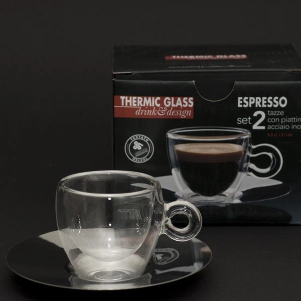 Filiżanki termiczne do espresso 2 szt. + podstawki - Luigi Bormioli