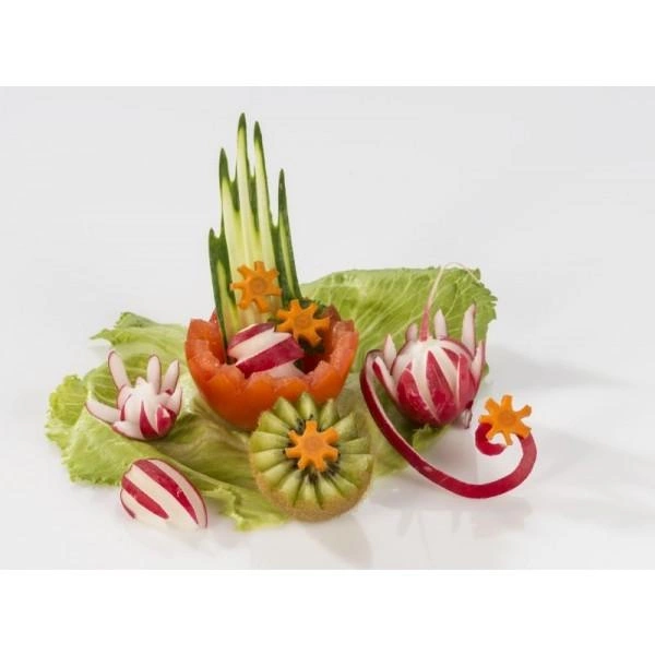 Obierak jest doskonałym wyborem dla osób, które pragną rozpocząć przygodę z carvingiem – sztuką dekoracyjnego krojenia warzyw i owoców. Dzięki niemu w prosty sposób stworzysz zachwycające dekoracje na talerzu, które z pewnością zaimponują Twoim gościom!