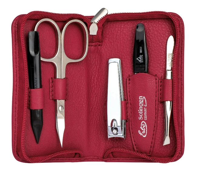 Zestaw do manicure 5 cz. stal niklowana czerwony - Erbe Solingen