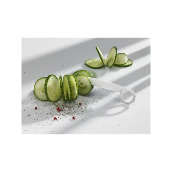Spirala Börner wykonana jest z wysokiej jakości tworzywa, co zapewnia jej trwałość oraz bezpieczeństwo użytkowania. Ostrze jest mocne i precyzyjnie zaprojektowane, co sprawia, że możesz z łatwością wycinać spirale z różnych składników. Dzięki temu narzędziu, nawet najbardziej wymagające warzywa i owoce nie będą stanowiły problemu.