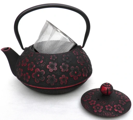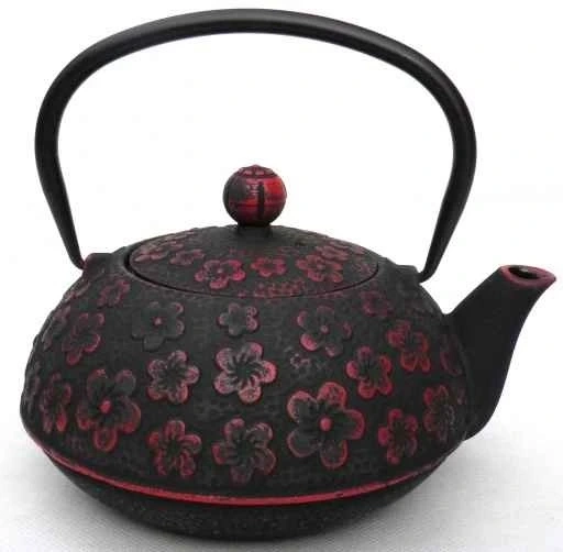 Dzbanek do herbaty żeliwny 0,9l kwiat czarno-czerwony - Zest for Life