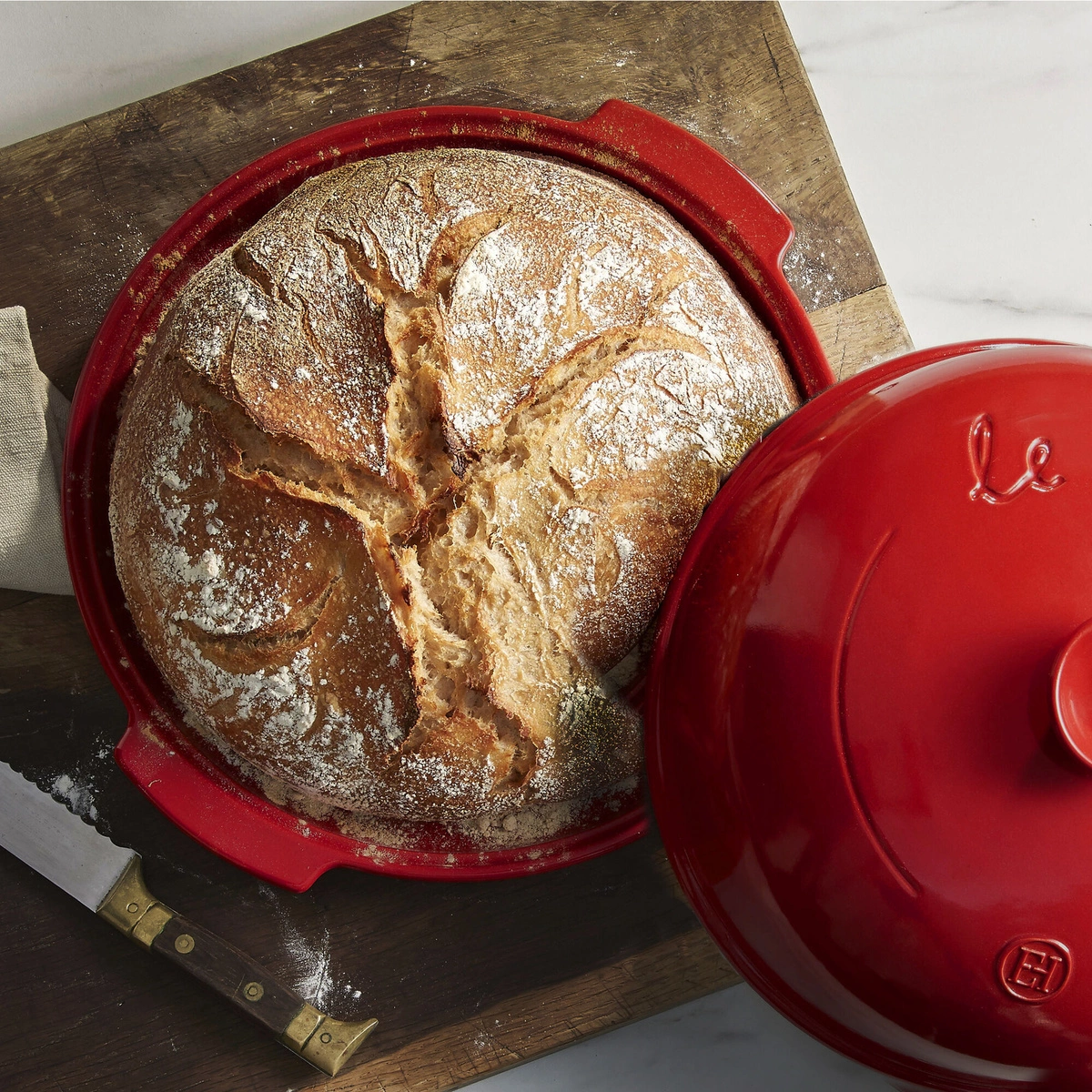 Szukasz sposobu na przygotowanie idealnego chleba w domowych warunkach? Naczynie Do Chleba 4,5L od marki Emile Henry spełni Twoje oczekiwania! Dzięki innowacyjnej ceramice ogniotrwałej oraz przemyślanej konstrukcji, każda kromka będzie miała idealną skórkę i puszyste wnętrze. Odkryj na nowo radość z pieczenia chleba, korzystając z prostych przepisów zawartych w dołączonej książce kucharskiej.