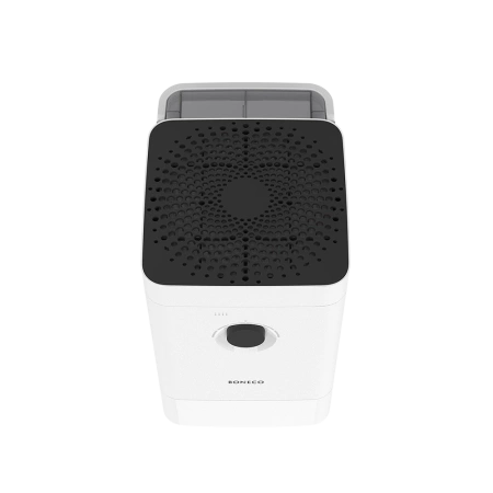 System HYBRID może być używany jako nawilżacz, jako oczyszczacz powietrza lub w zależności od potrzeb, w połączeniu. Stały filtr wstępny zatrzymuje włosy, kurz domowy i inne duże cząsteczki brudu. Podczas korzystania z filtra komfortu prawie wszystkie wirusy zostają redukowane, a nieprzyjemne zapachy absorbowane. Urządzenie posiada matę parownika, która jest odpowiedzialna za nawilżanie powietrza. Wygodna obsługa, wysoka wydajność i łatwe czyszczenie - to znak rozpoznawczy HYBRID H400. Urządzenie dba o idealną wilgotność w Twoim domu. Jednocześnie innowacyjny, zintegrowany filtr oczyszcza powietrze w pomieszczeniu i łagodzi objawy alergii. Dzięki dużemu zbiornikowi wody gwarantowany jest wyjątkowo długi czas pracy. Urządzenie można łatwo obsługiwać za pomocą pokrętła. Dla dodatkowych funkcji i trybów dostępna jest aplikacja BONECO: wystarczy ustawić żądaną wilgotność, a H400 zajmie się resztą. Ponadto można wybierać między różnymi trybami w aplikacji (hybrydowy, oczyszczacz, nawilżacz). Profil SLEEP zapewnia spokojny sen w nocy, a BABY zapewnia idealne warunki sprzyjające Twojemu dziecku.
