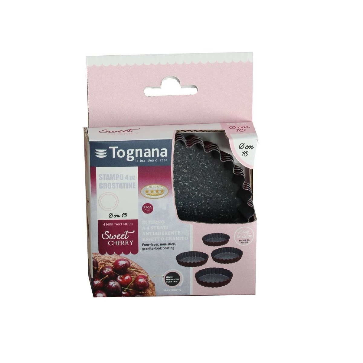 Zestaw Czterech Form Do Pieczenia Tart 10x10cm Bordowe - Tognana
