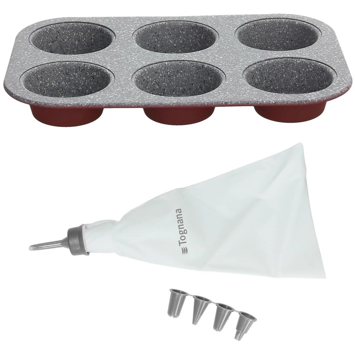 Blacha na 6 muffinów bordowa i rękaw do dekoracji - Tognana - stal węglowa - Tognana
