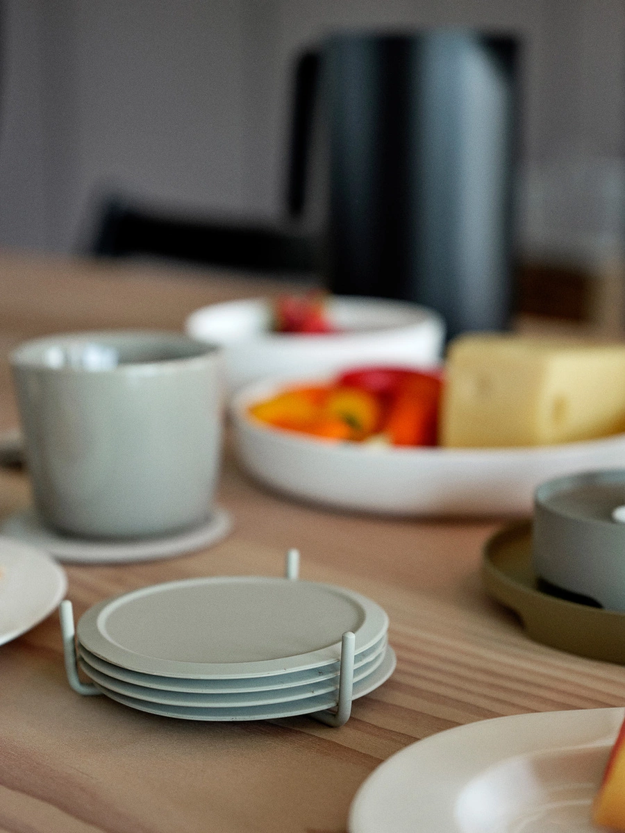 - W zestawie: Sześć podstawek w metalowym stojaku.