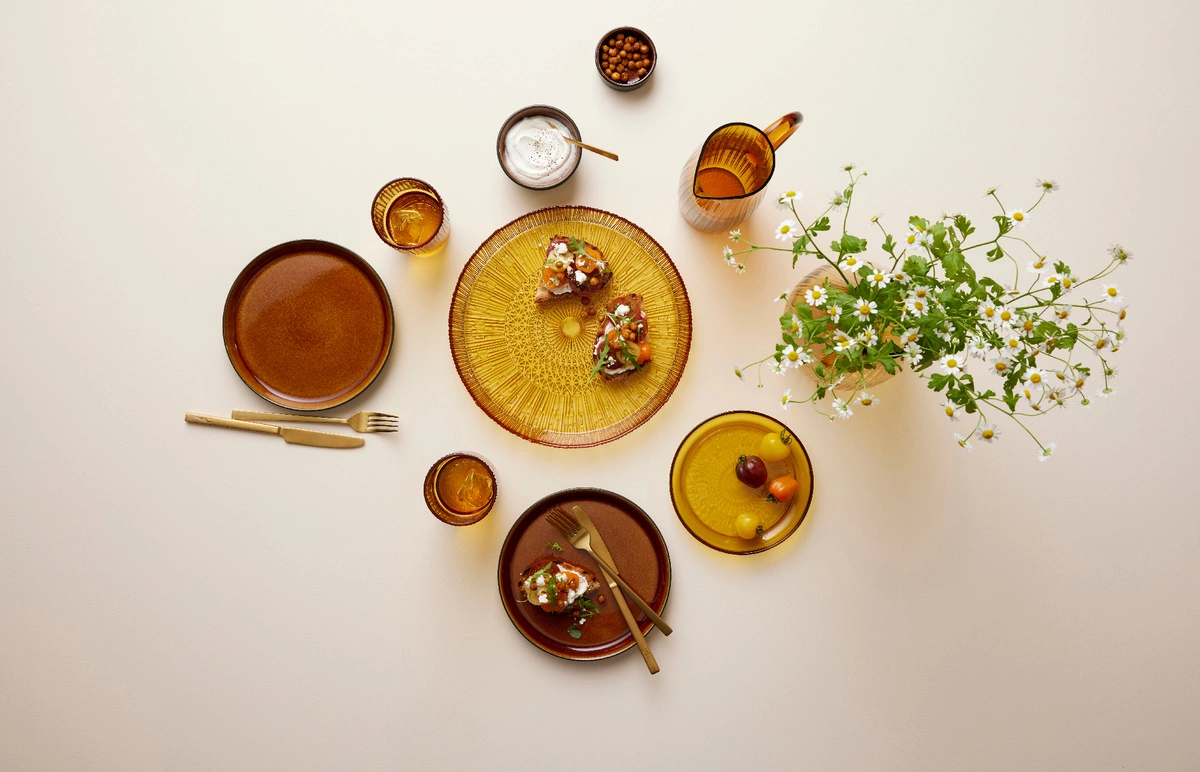 - Nowoczesny design: Bursztynowy kolor i eleganckie kształty nadają Twojemu stołowi wyrafinowany charakter.