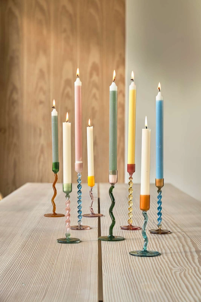 Dzięki transparentnemu szkłu, światło świecy przenika przez barwy, co tworzy ciepłą i przytulną atmosferę. Świecznik doskonale sprawdzi się w: