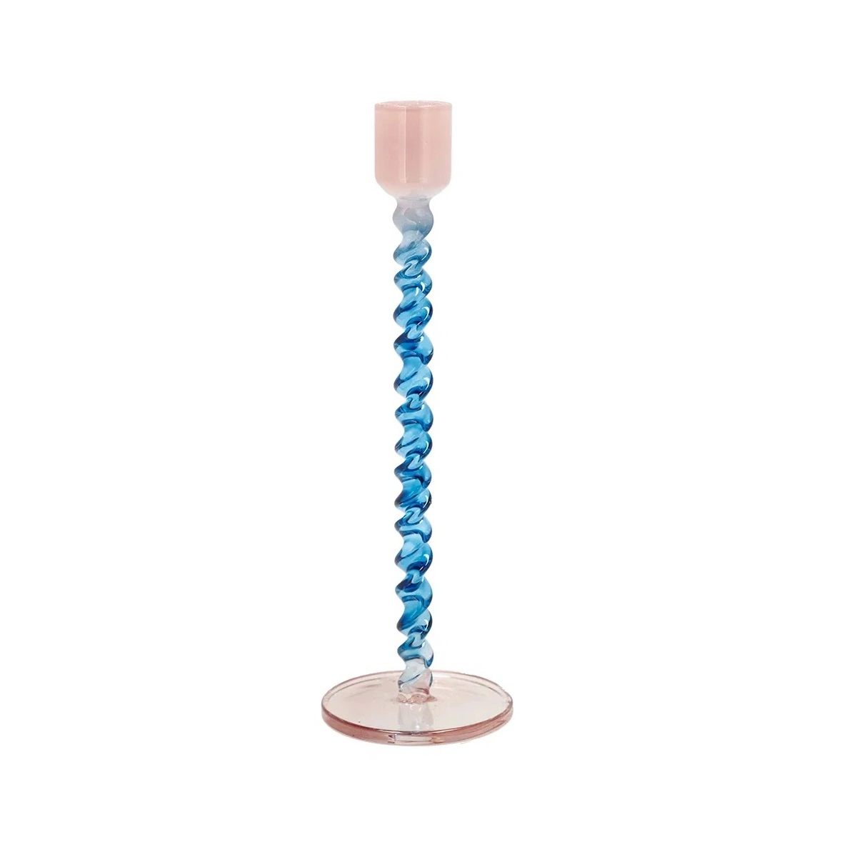Świecznik Prosty Niebiesko/Różowy Szklany - Villa Collection