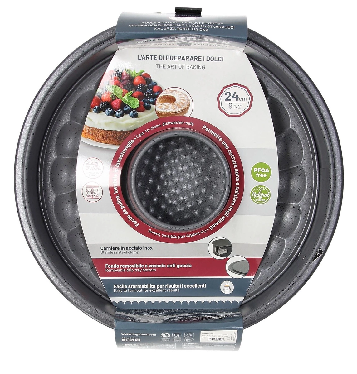 Forma z dwoma spodami okrągła 26cm Premium Szary - Tognana to idealne rozwiązanie dla każdego, kto ceni sobie jakość i funkcjonalność. Dzięki innowacyjnym rozwiązaniom i starannemu wykonaniu, forma ta z pewnością spełni oczekiwania nawet najbardziej wymagających kucharzy. Niezależnie od tego, czy pieczesz na specjalne okazje, czy po prostu dla przyjemności, ta tortownica będzie Twoim niezastąpionym towarzyszem w kuchni.