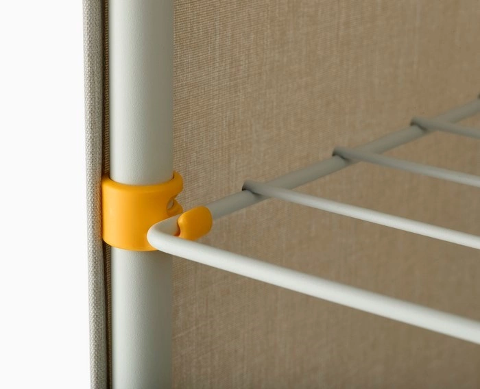 - Trzy stalowe poziomy – umożliwiają dostosowanie konstrukcji w zależności od rodzaju prania, co pozwala na wygodne suszenie nawet długich ręczników.