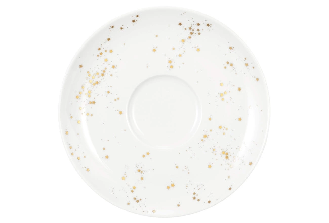 Spodek Seltmann Liberty Golden Stars nie tylko prezentuje się elegancko, ale również jest niezwykle funkcjonalny. Jego średnica sprawia, że idealnie komponuje się z filiżanką do kawy lub herbaty z tej samej serii, tworząc spójną, elegancką całość. Może również pełnić funkcję małego talerzyka, idealnego do podania: