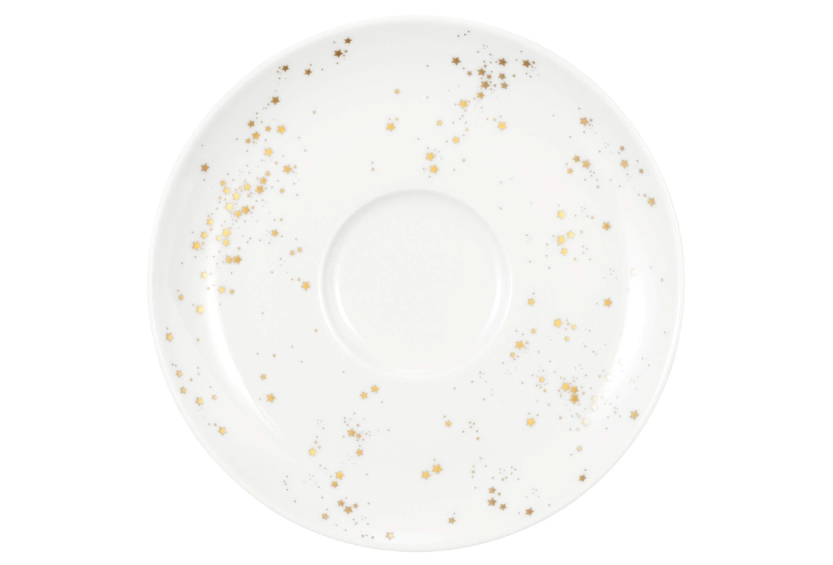 Odkryj klasyczną elegancję w nowoczesnym wydaniu z wyjątkowym spodkiem z kolekcji „Golden Stars”. Ten spodek o średnicy 16.5 cm to doskonały wybór dla tych, którzy pragną wprowadzić do swojego stołu odrobinę luksusu. Wykonany z najwyższej jakości porcelany marki Seltmann Weiden, zachwyca śnieżnobiałą barwą oraz delikatnym wzorem złotych gwiazdek, które dodają mu niepowtarzalnego uroku.