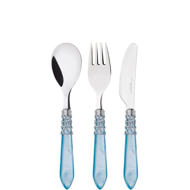 Kolorystyka i wzory przyciągają uwagę dzieci i sprawiają, że posiłki stają się przyjemnością. Niebieski odcień sztućców doskonale komponuje się z innymi akcesoriami kuchennymi, a ich nowoczesny wygląd z pewnością przypadnie do gustu zarówno dzieciom, jak i rodzicom.
