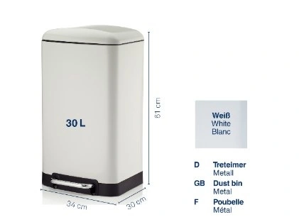- Elegancki kosz na śmieci o pojemności 30 L, idealny do każdego wnętrza. Funkcjonalny design i wysoka jakość wykonania sprawią, że sprzątanie stanie się przyjemnością.