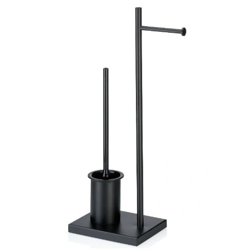 Stojak WC wraz ze szczotką toaletową został zaprojektowany z myślą o nowoczesnych łazienkach. Jego elegancki wygląd dodaje przestrzeni szyku i stylu. Czarny kolor sprawia, że produkt jest ponadczasowy i pasuje do wielu aranżacji, zarówno klasycznych, jak i minimalistycznych.