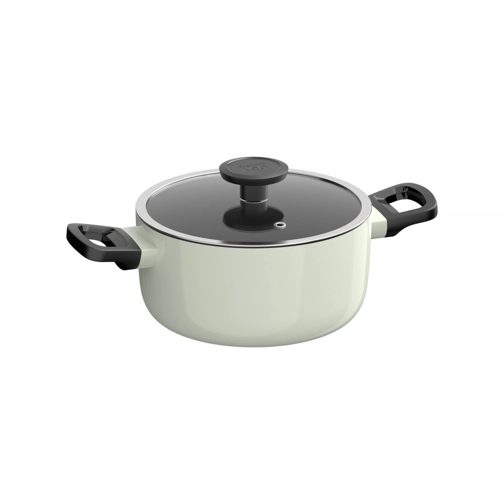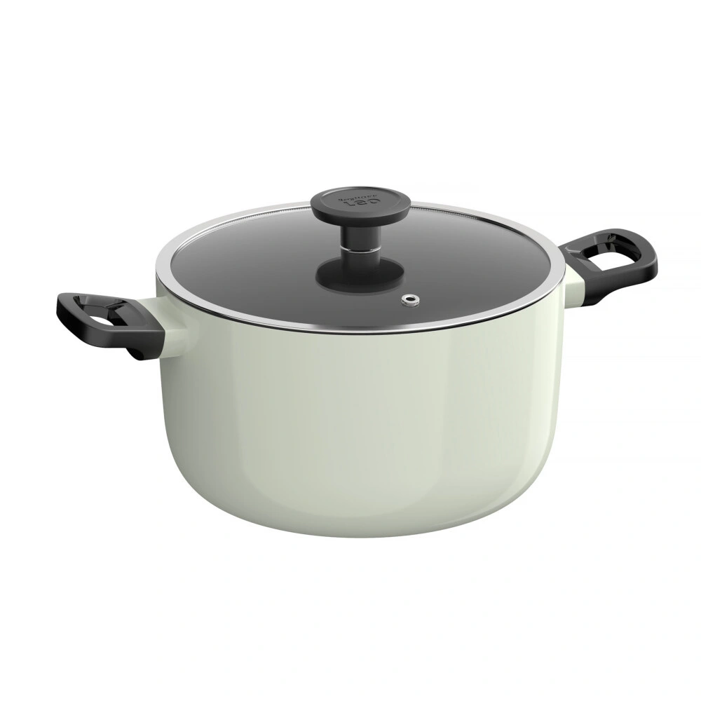 Zestaw garnków Non-Stick Glints Sage wyróżnia się zdrową i trwałą powłoką nieprzywierającą, która nie tylko ułatwia gotowanie, ale także czyszczenie naczyń. Gotując, masz możliwość używania niewielkiej ilości oleju lub całkowicie zrezygnować z tłuszczu, co jest idealnym rozwiązaniem dla osób dbających o zdrową dietę.