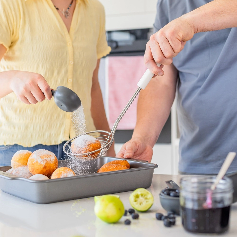- Gęsto tkane sito – idealne do odcedzania makaronów, warzyw czy smażenia potraw w głębokim tłuszczu.