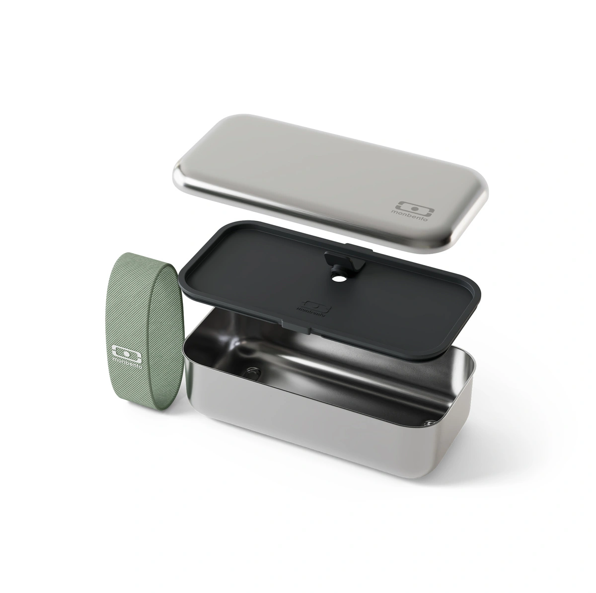 Lunchbox Monbento Sense wyróżnia się eleganckim wyglądem dzięki połyskującej stali oraz kolorowej gumce. To idealne połączenie stylu i funkcjonalności. Możesz również spersonalizować swój stalowy lunchbox – wykorzystaj przestrzeń pod górną pokrywą, aby dodać pojemnik z MB Original, przechować sztućce MB Slim Box lub umieścić w środku pojemnik na przyprawy Temple.